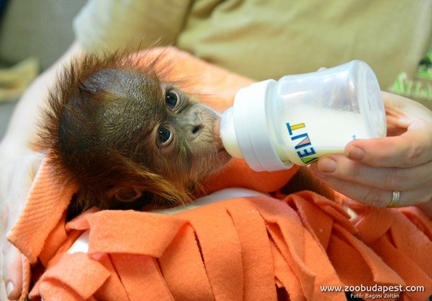 “Már korábban bejelentettük, hogy a születése után mindössze egy hétre – az anyaállat betegsége miatt sajnos – elárvult orangután kölyköt mesterségesen nevelik munkatársaink. Mivel a kicsinek a legtökéletesebb nyugalomra volt szüksége, az orangutánokkal foglalkozó gondozókon, illetve az állatorvosokon kívül senki nem láthatta az apróságot.” – írták az állatkert honlapján.